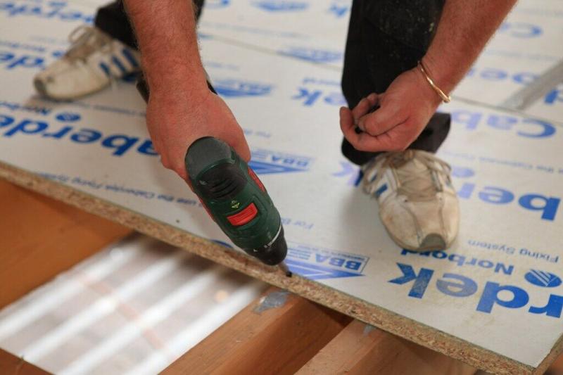 P5 Peel Clean T&G Chipboard Flooring 2400x600mm Do a quality job with quality products. CaberDek is based upon CaberFloor P5 which complies with BS EN312: part 5. Create a safe working platform thanks to a waterproof, slip-resistant film that allows other building work to continue safely. Protect your hard work with BBA certification. When laid in accordance with fitting instructions, the floor is designed to withstand the elements for up to 42 days between laying the floor and fixing the roof. Tough enough to work on site, the heavy-duty protective film has a high impact, puncture and tear resistance. When used with CaberFix tape, it protects against spilled plaster, paint and the weather. For use in harsh winter conditions, X-treme Tape can withstand the most severe temperatures. Creates a floor that surpasses acoustic building regulations. Tests on the CaberDek and CaberFix Pro flooring system have demonstrated that this system exceeds the acoustic performance target with an impressive 44db. Do a clean job. The CaberDek film is easy to peel, and has a sealed wax protective surface, leaving a clean floor surface for the new property owner.